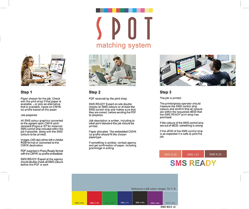 Getting started using the Spot Matching System (SMS) Regardless if you are a brand owner, a designer or a printer/manufacturer, - if you like the idea of using colours that look the same in print, online and on TV, we have prepared this section to get you started.